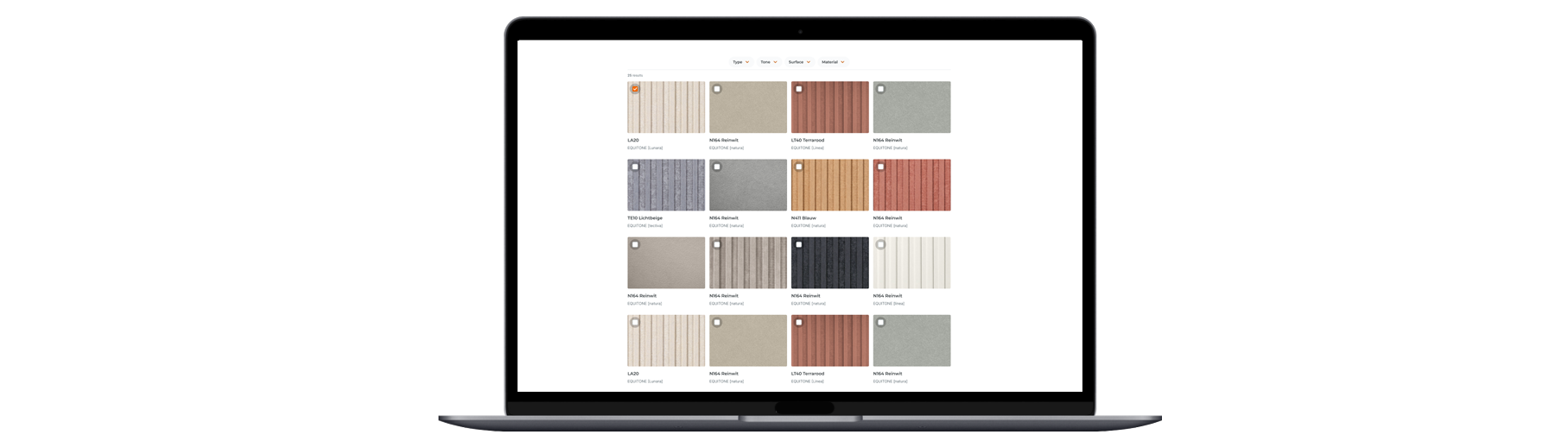 Explore the diverse range of textures and colors offered by EQUITONE to create your own unique palette that perfectly matches your needs. Save your customized selection and conveniently order samples to visualize your design possibilities firsthand.