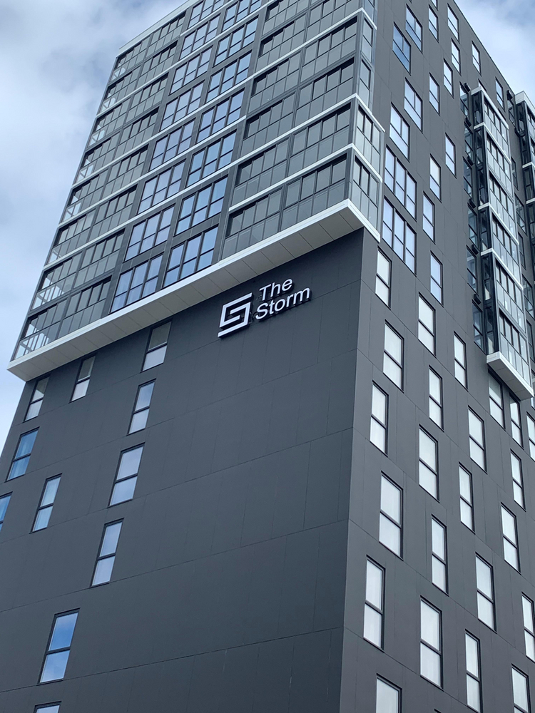 The Storm er et arkitektonisk markant hotel- og lejlighedsprojekt, der smelter funktionalitet og æstetik sammen i hjertet af Bodø. Byggeriet rummer 158 hotelværelser og 48 ejerlejligheder fordelt over 16 etager. Den ikoniske facade, beklædt med EQUITONE [pictura], skaber en levende og dynamisk overflade, hvor lys og skygge spiller elegant på den silkebløde, matte overflade. Materialets holdbarhed og farvestabilitet sikrer en vedvarende æstetik, der modstår det barske nordnorske klima.