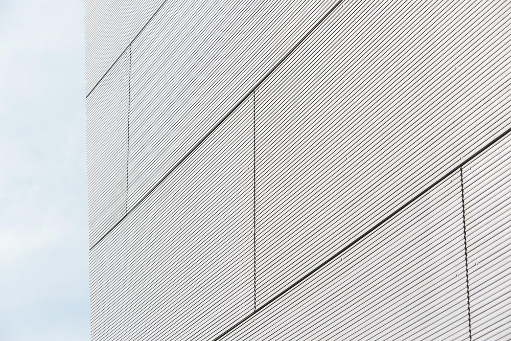 Für die Fassadenverkleidung wählten die Architekten EQUITONE Linea, das mit seinen feinen Rillen eine lebendige Oberfläche schafft, die sich je nach Sonnenstand verändert. Gleichzeitig verleiht das Material der Fassade eine rustikale Note, die einen spannenden Kontrast zum ursprünglichen, modernen Baukörper bildet und an die Steinbearbeitung der früheren Bergarbeiter erinnert.