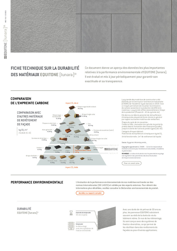 Explore our FAQs to find everything you need to know about EQUITONE, from Cradle to Cradle certification and embodied carbon data to installation, repair, and recycling guidance.