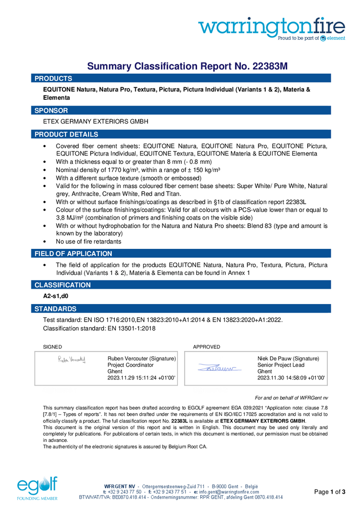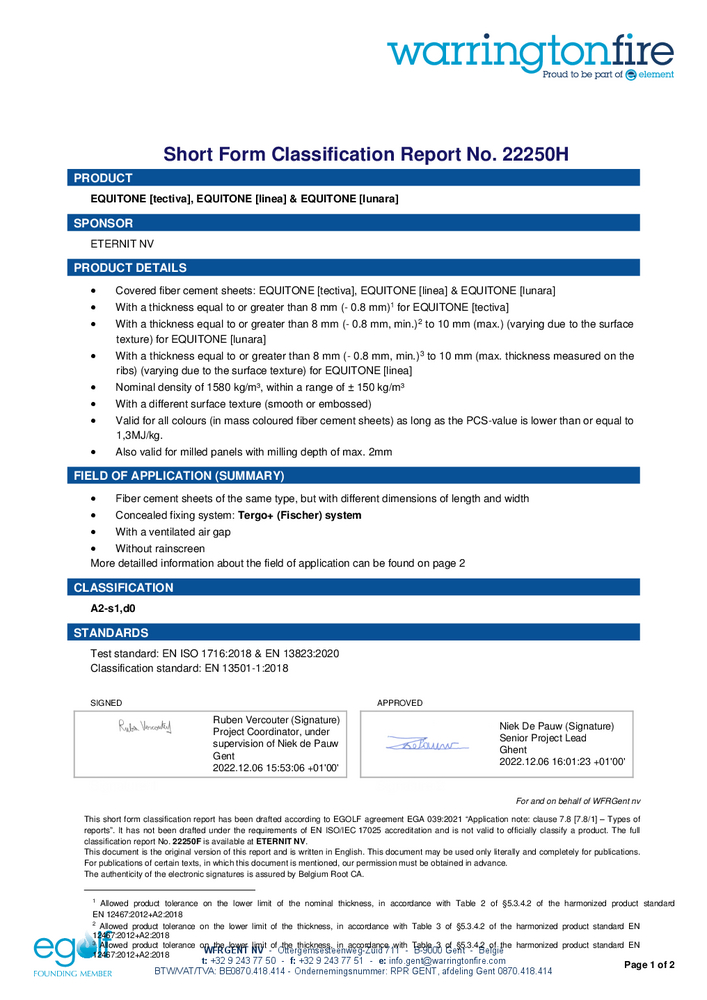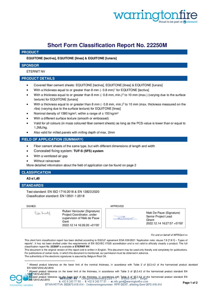 Short Form Fire Classification Report [tectiva], [linea], [lunara] Tergo+ Fire Classification Short Form Fire Classification Report [tectiva], [linea], [lunara] Tergo+
