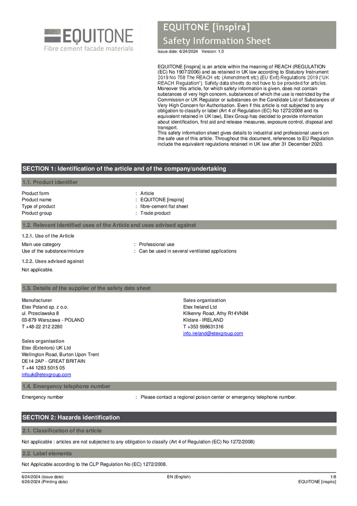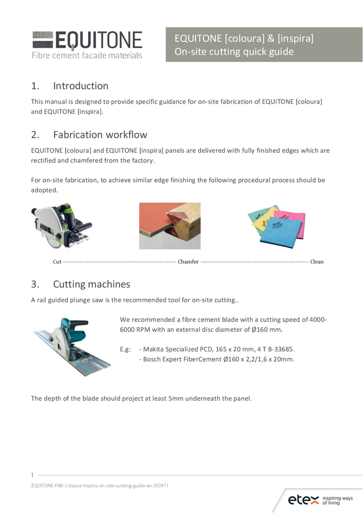 EQUITONE FAB Coloura and Inspira on site cutting guide Installation guide EQUITONE FAB Coloura and Inspira on site cutting guide
