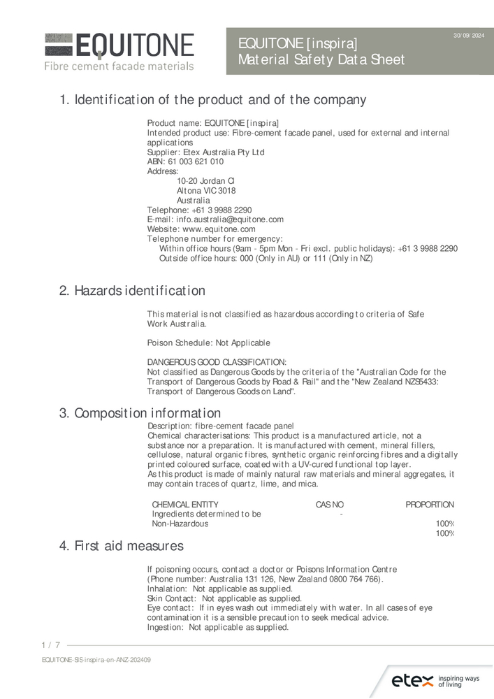 Consult with EQUITONE sales for questions relating to the UNI-Metal Screw.