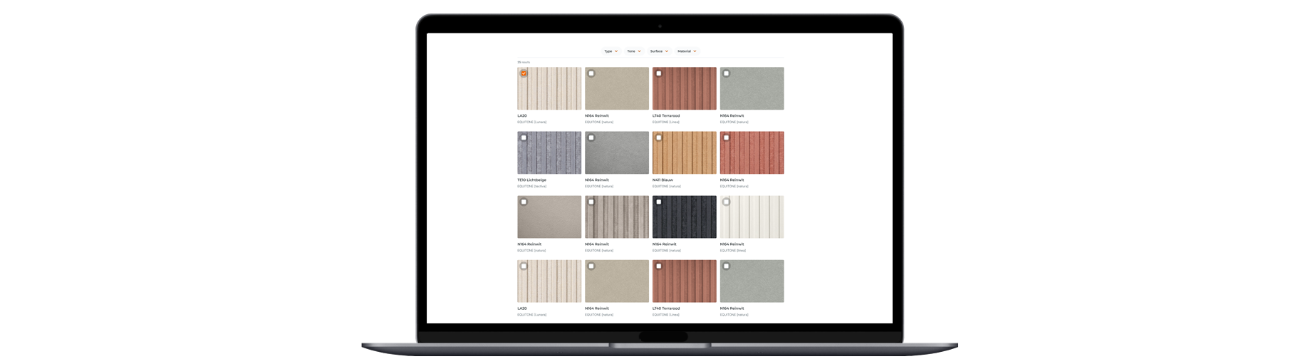 Explore the diverse range of textures and colors offered by EQUITONE to create your own unique palette that perfectly matches your needs. Save your customized selection and conveniently order samples to visualize your design possibilities firsthand.