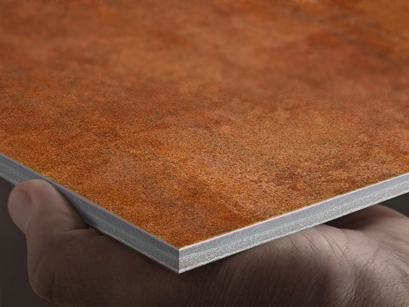 ✔ Digitally printed patterns inspired by wood, concrete, stone and rust