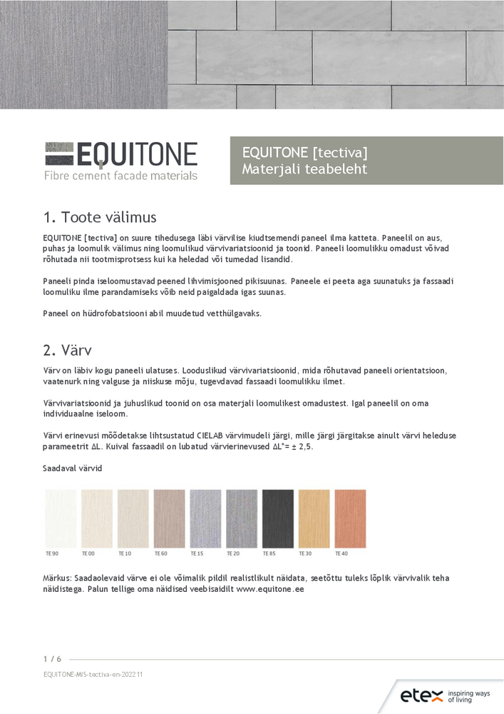 B-EPD ENVIRONMENTAL PRODUCT DECLARATION Jätkusuutlikkus B-EPD ENVIRONMENTAL PRODUCT DECLARATION EQUITONE [pictura] / EQUITONE [natura] PRO