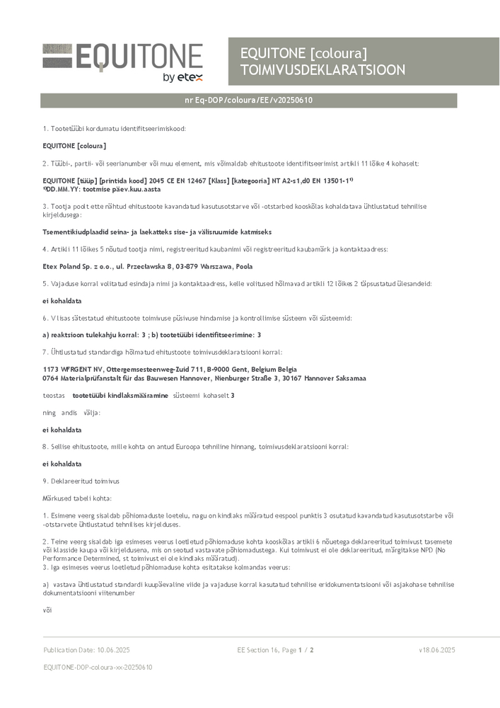 EQUITONE [coloura] TOIMIVUSDEKLARATSIOON Toimivusdeklaratsioon EQUITONE [coloura] TOIMIVUSDEKLARATSIOON