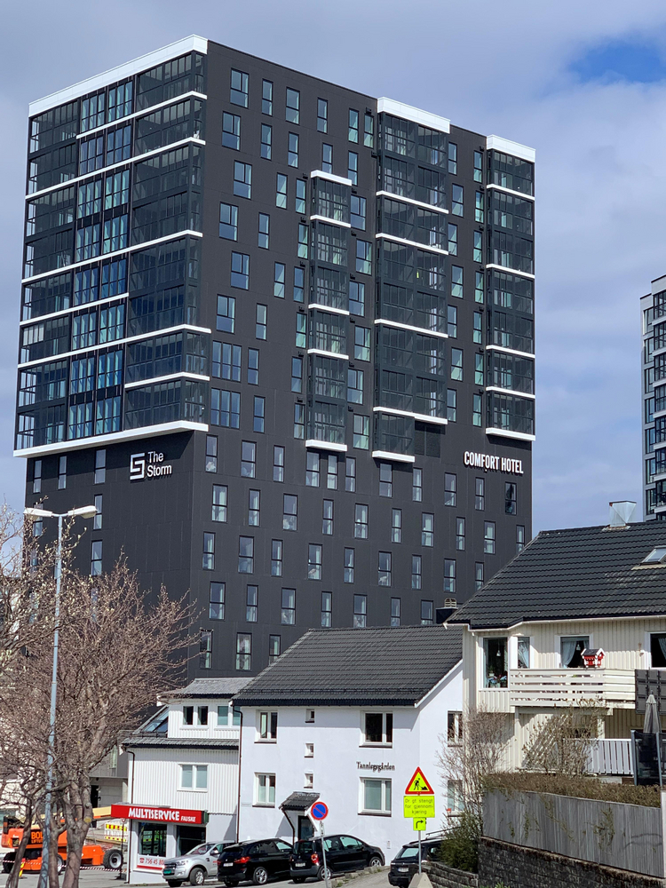 The Storm er et arkitektonisk fremtredende hotell- og leilighetsprosjekt som forener funksjonalitet og estetikk midt i Bodø sentrum. Bygget rommer 158 hotellrom og 48 selveierleiligheter fordelt på 16 etasjer. Fasaden, kledd med EQUITONE [pictura], gir bygget en raffinert og moderne karakter. Materialets silkemyke, matte overflate skaper en dynamisk dybde hvor lys og skygge stadig endrer uttrykket gjennom dagen. Den slitesterke og fargebestandige overflaten gjør det til et ideelt valg for de krevende værforholdene i Nord-Norge.