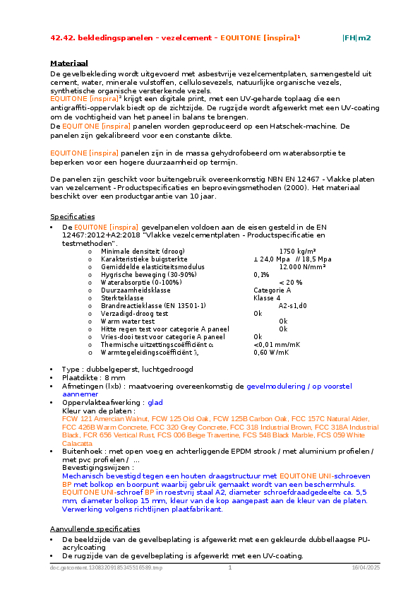 Productinformatieblad EQUITONE [inspira] Technical Datasheet Productinformatieblad EQUITONE [inspira]