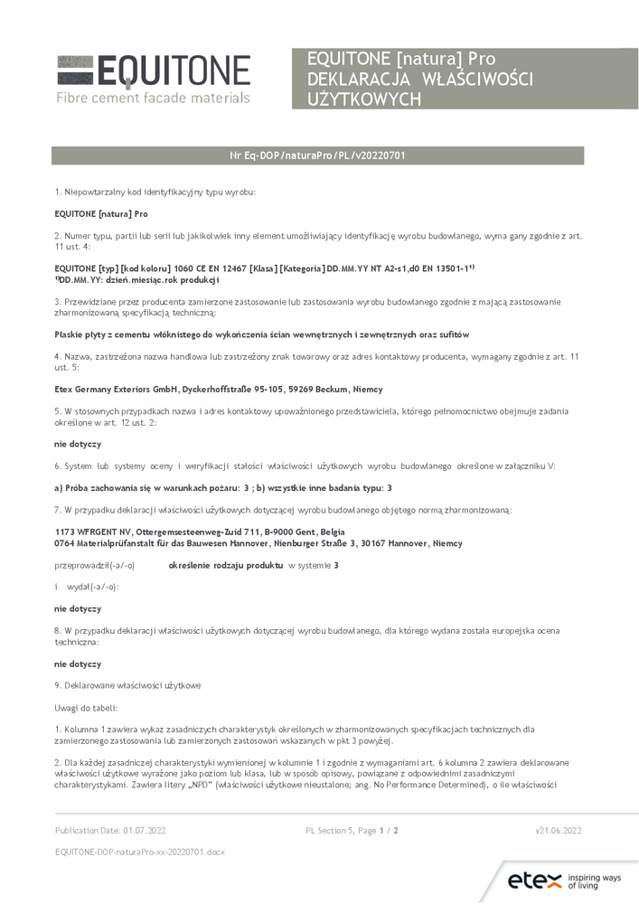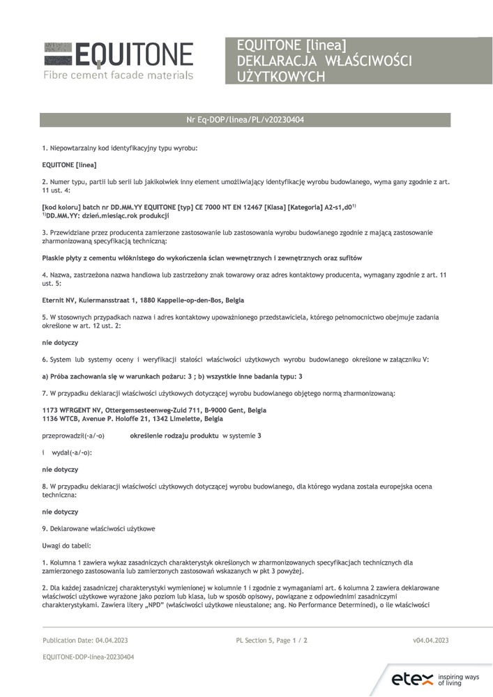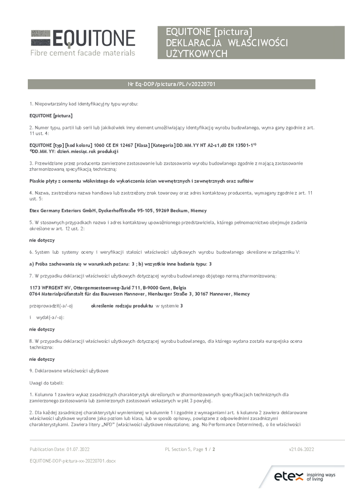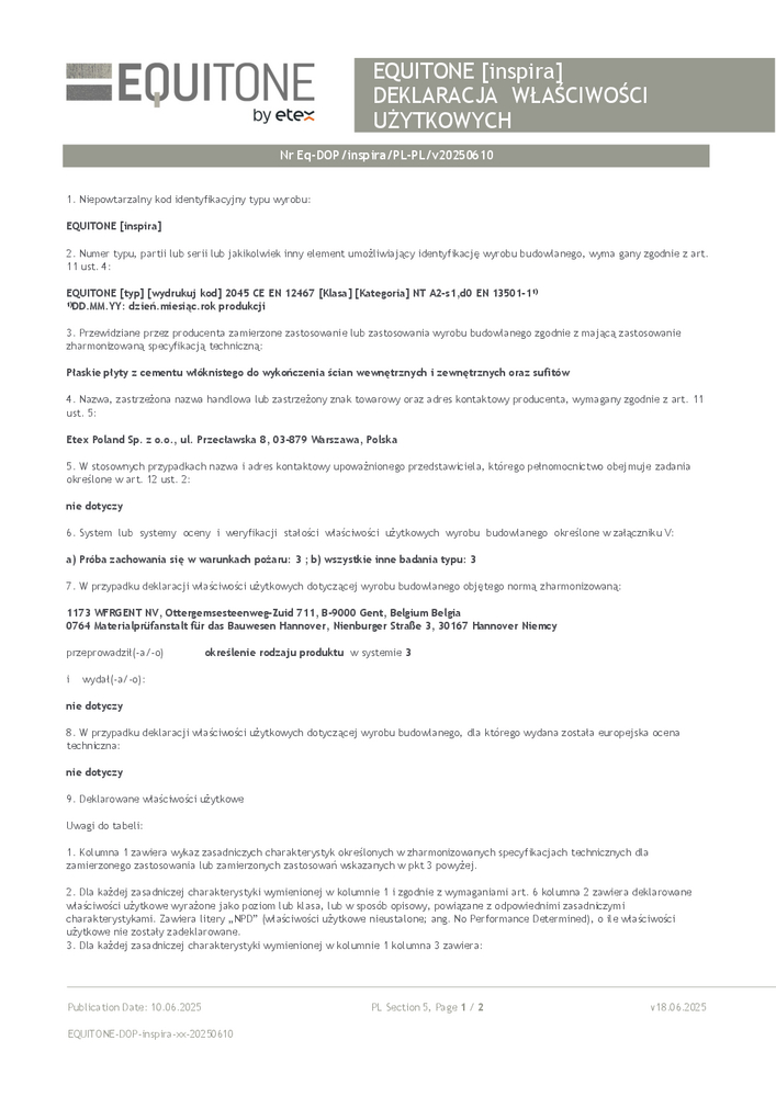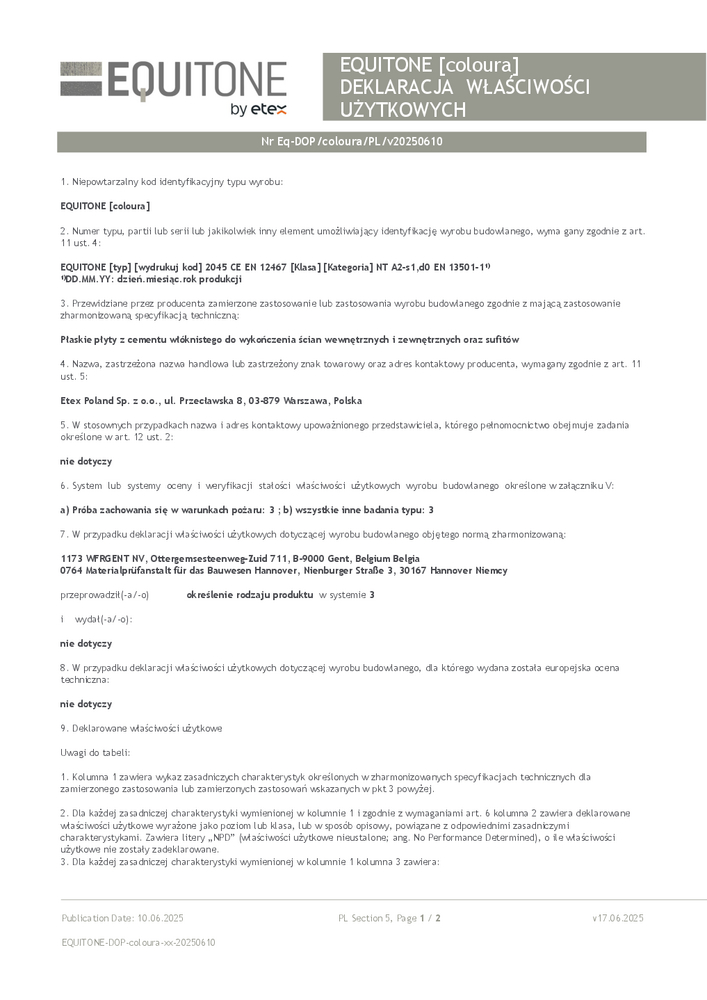 Deklaracja właściwości użytkowych EQUITONE [coloura]