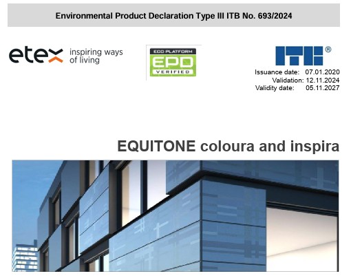 Dla całej gamy materiałów EQUITONE otrzymaliśmy Deklaracje Środowiskowe Produktu (EPD). Są to niezależnie zweryfikowane i zarejestrowane dokumenty, które pozwalają nam otwarcie informować o ekologiczności naszych materiałów przez cały cykl ich życia.