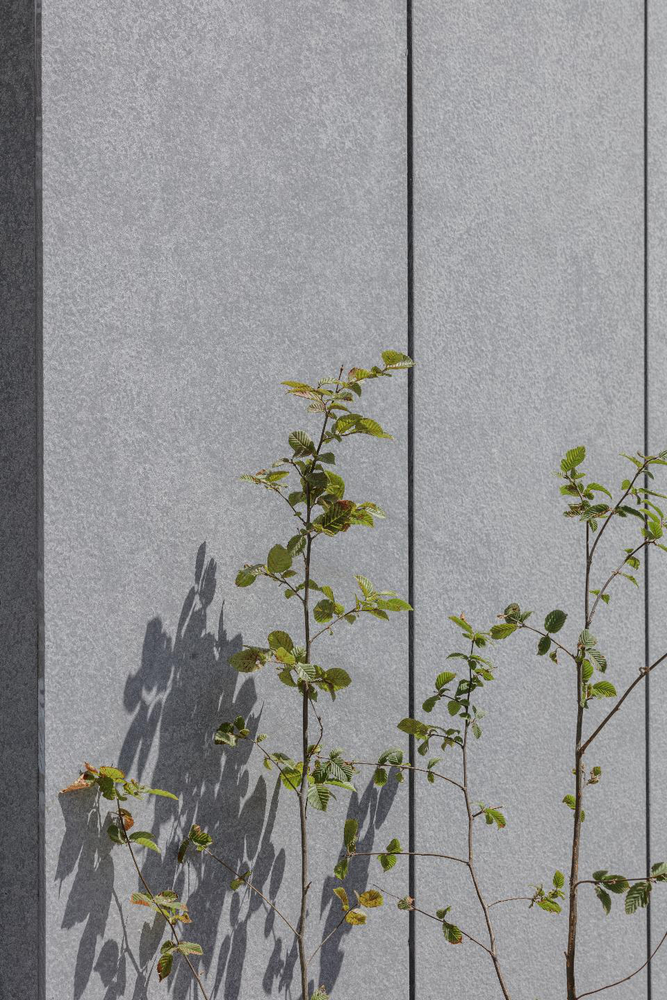 A ANAA cortou a [lunara] em painéis lineares usando ângulos suaves para tornar a fachada visualmente interessante e para chamar a atenção de qualquer pessoa próxima. A textura variável da [lunara] convida o espectador a investigar mais a fundo a fachada a uma distância mais próxima.