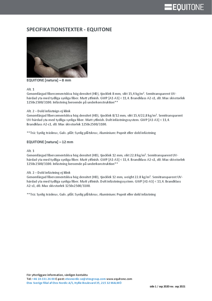 Specifikationstexter EQUITONE Specifikationstexter Specifikationstexter EQUITONE Specifikationstexter EQUITONE